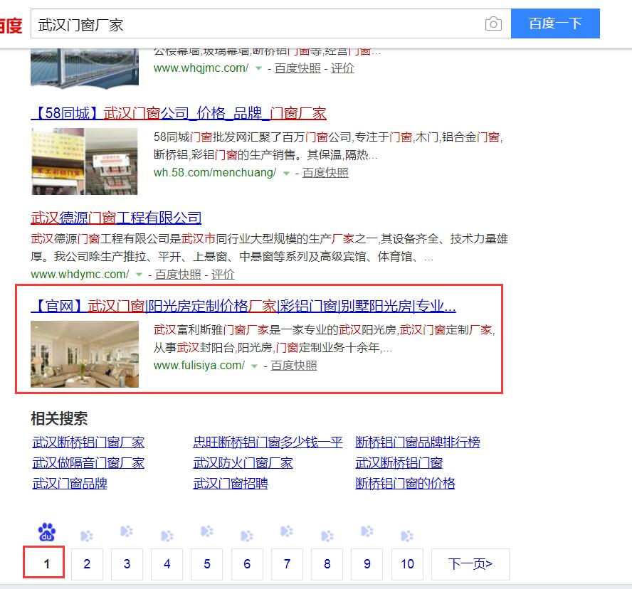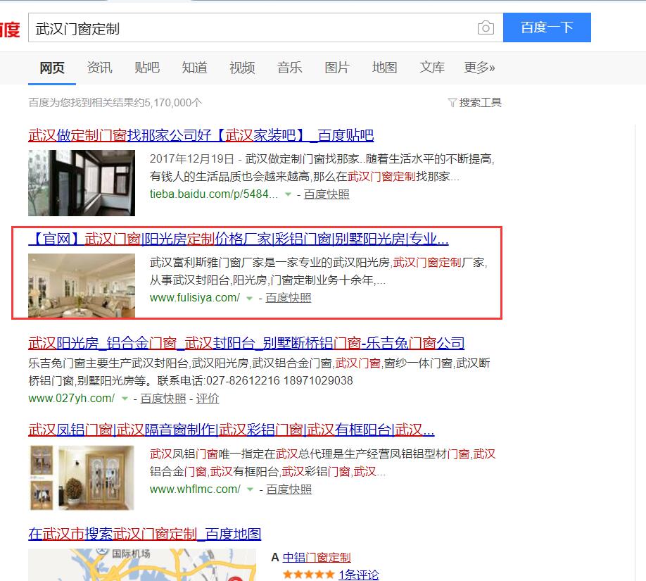 武漢富利斯雅門窗廠家與本公司簽訂優(yōu)化合同,目前排名已基本上線,且排名穩(wěn)定